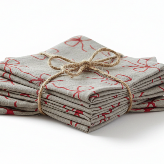 Hand-Painted Bow print Linen Table Napkins Linen Set of 2
