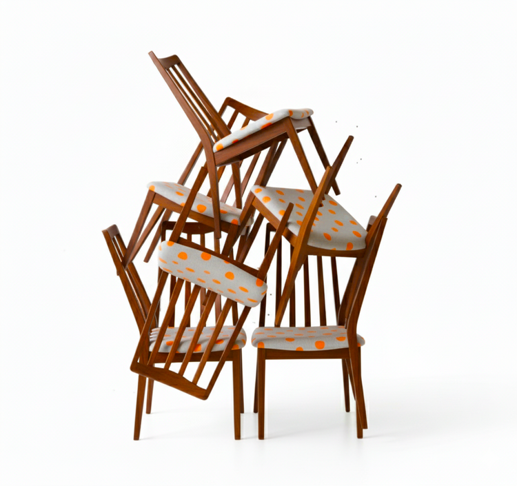 Upholstered Vintage G-Plan Dining Chairs Set of 5 in Linen Print