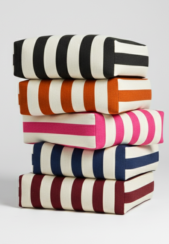 Hand-painted & Re-purposed Linen Floor Cushion Cube in Stripe print