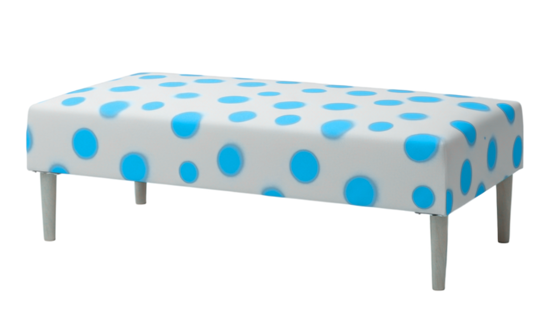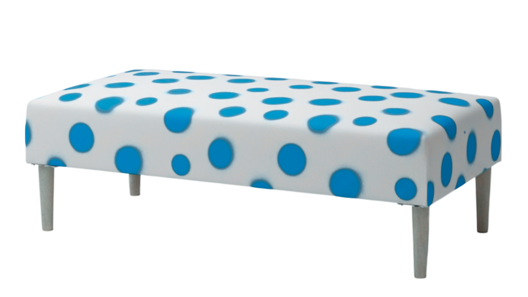 Hand-Painted Upholstered Linen Coffee Table Ottoman in Polka Dot print