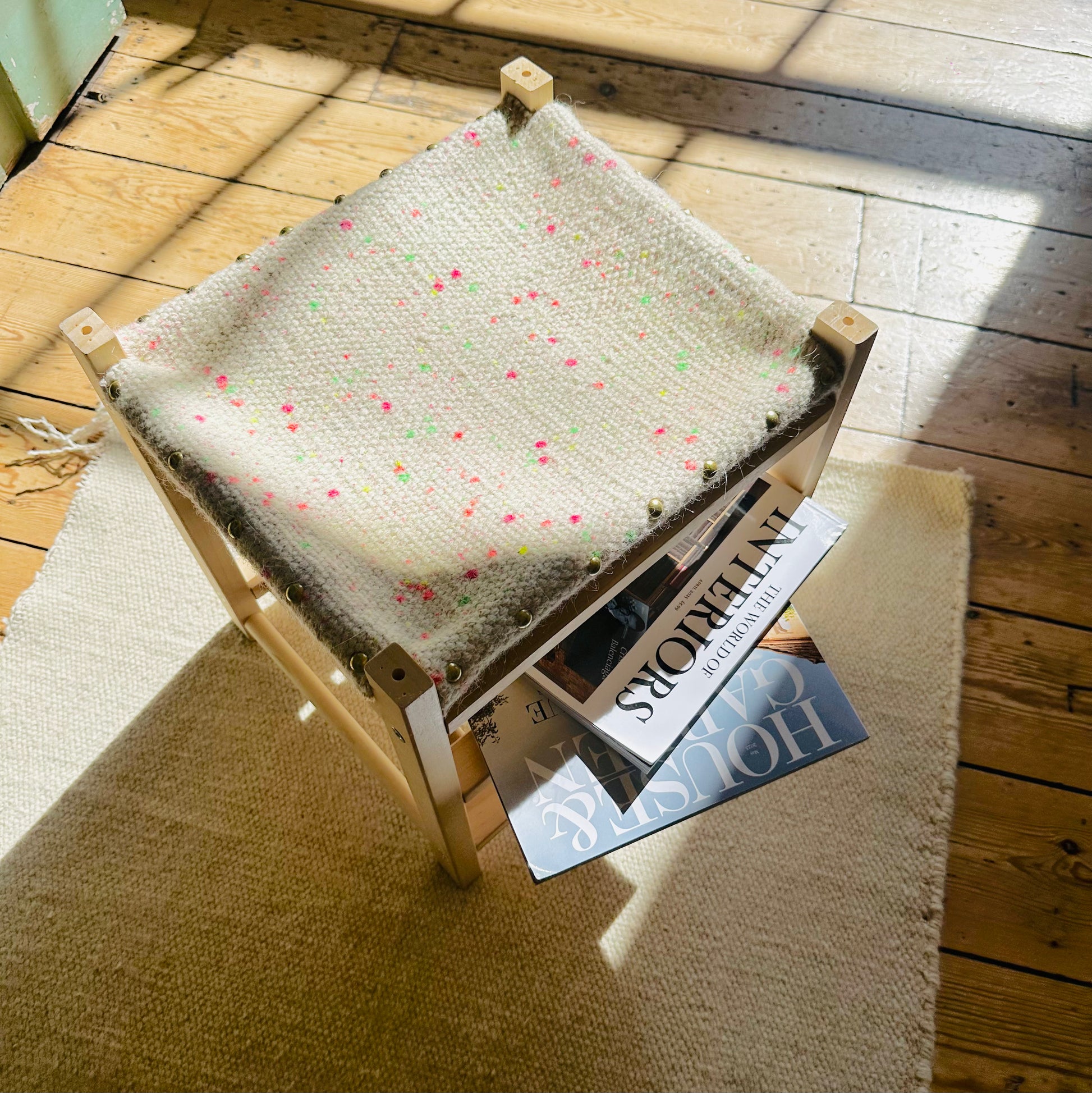 Sustainable Splatter off-cut Footstool & Magazine Rack