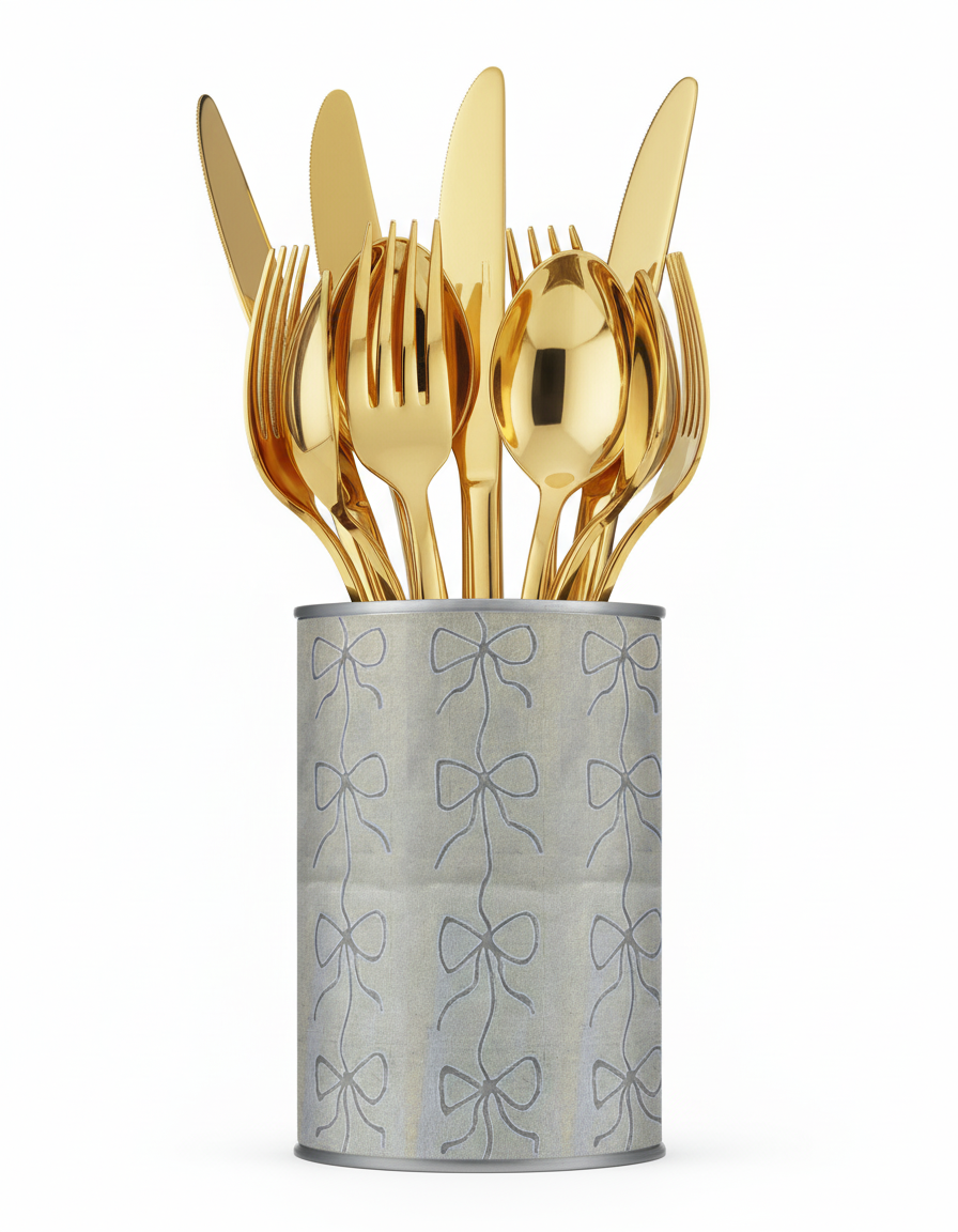 Hand-painted in our limited-edition "Bow" print, they are a festive addition to the christmas table to hold cutlery, bread sticks or candles.